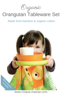 Children’s tableware set, bamboo and organic cotton – Orangutan – Pinterest – Croque-Maman