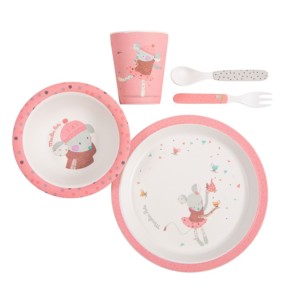 Bamboo kids tableware – Les Jolis Trop Beaux – Pink – Plates – Moulin Roty – Croque-Maman