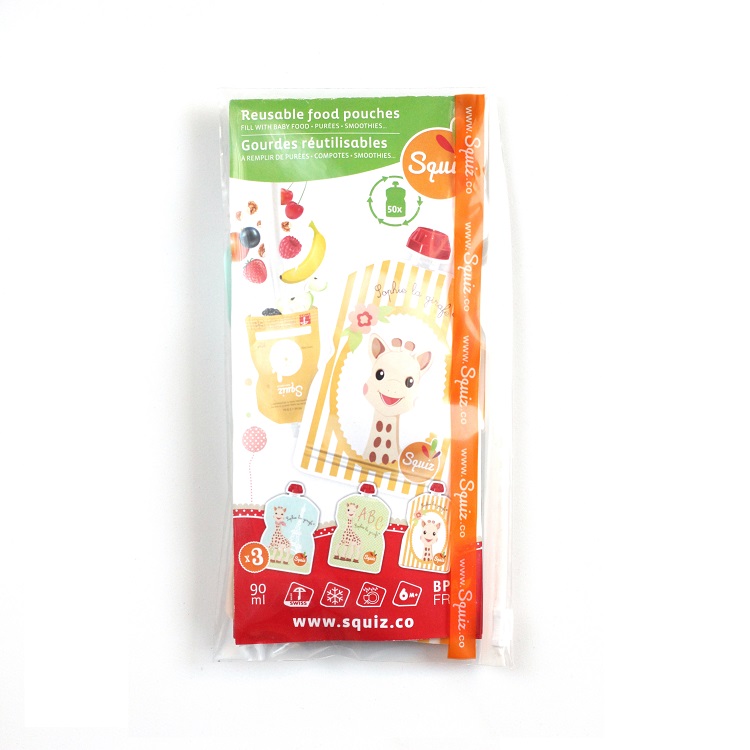 Reusable food pouches for babies – Packaging - Set of 3 – Squiz Sophie la giraffe®