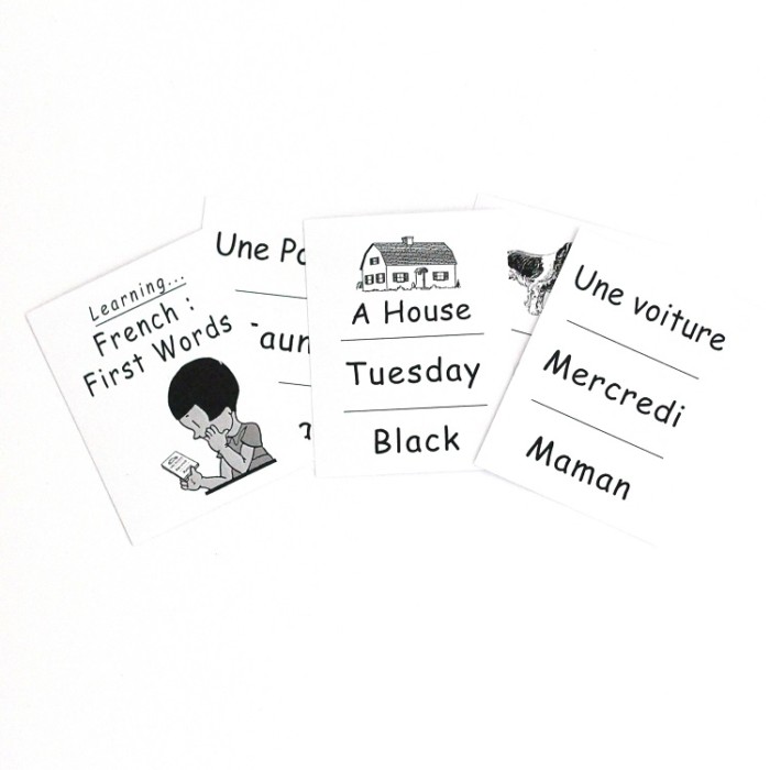 • Paper cards to learn 72 French words: colours, months, days of the week, seasons, numbers and a few other words