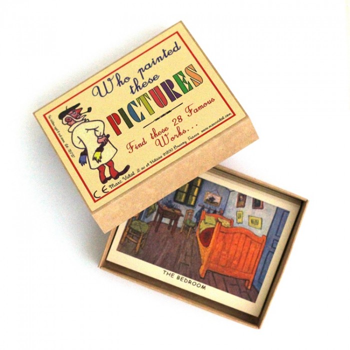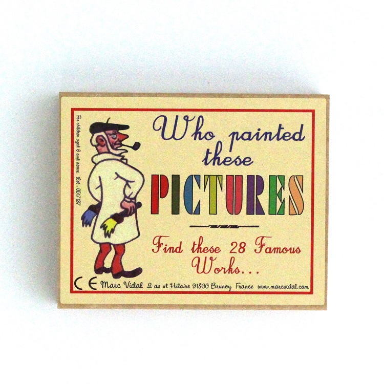 The “Who painted these pictures?” game is part of a selection of retro toys from Marc Vidal: guess the flag, matchsticks, optical illusions, magician’s tricks, learning to draw animals, learning…French: first words. This French brand celebrates the timeless appeal of old-fashioned toys.
