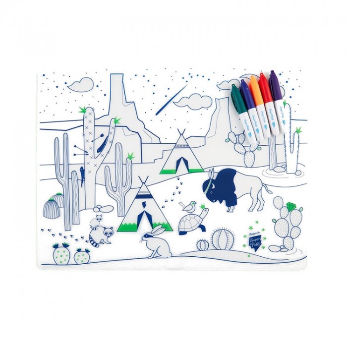 - One easy to clean cactus placemat in soft silicone to draw on and on and on cactus, tipi tents…