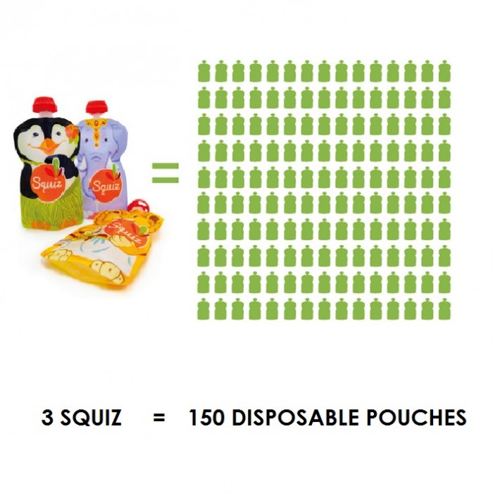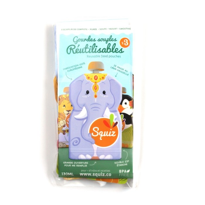 These 3 reusable 130mL Squiz food pouches are ideal for babies, toddlers, children. Ultra-resistant thanks to their double zipper, they are perfect for fruit and vegetable purees, healthy yogurt, smoothies…